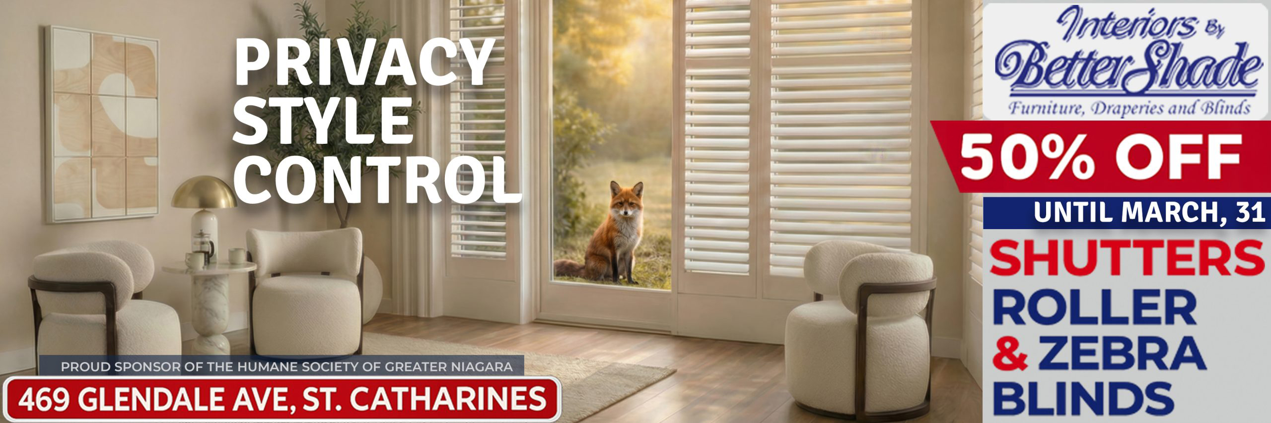 Our featured fox behind those patio door shutters is part of our partnership supporting the local humane society. Different animals. One meaningful cause. 🧡